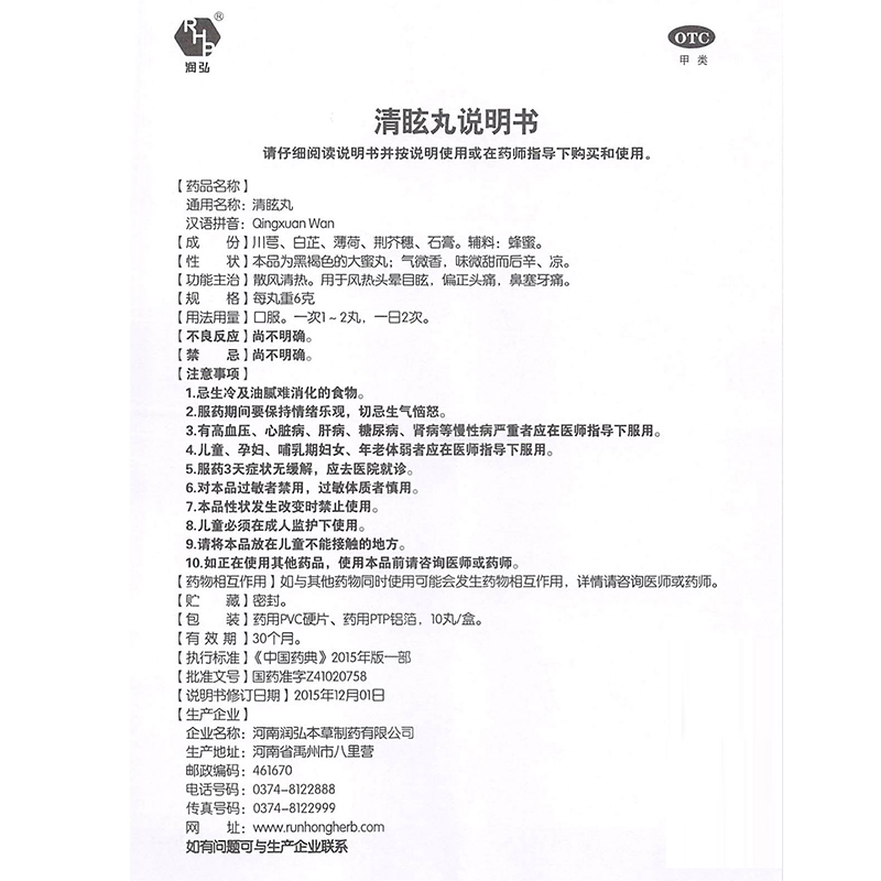 10丸大蜜丸头晕目眩牙痛鼻塞风热偏正头痛 润弘清眩丸6g 包邮