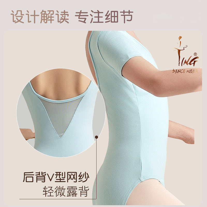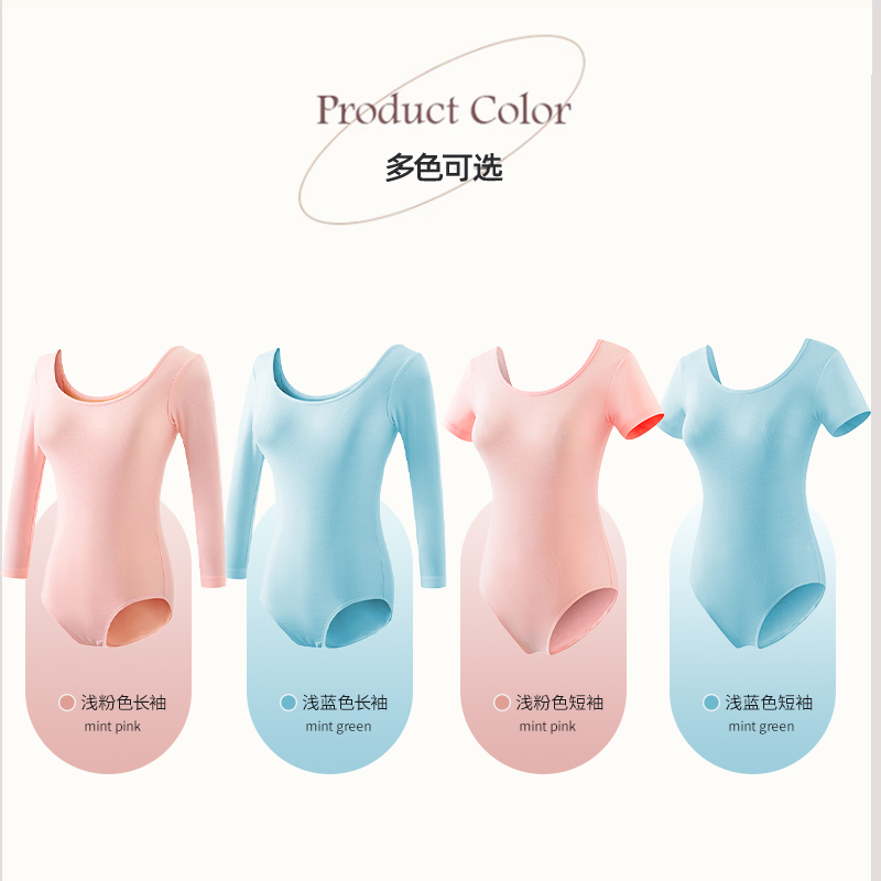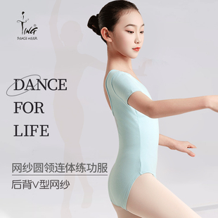 陈婷舞蹈服 舞蹈连体练功服粉色芭蕾练功衣 儿童女童网纱圆领长袖