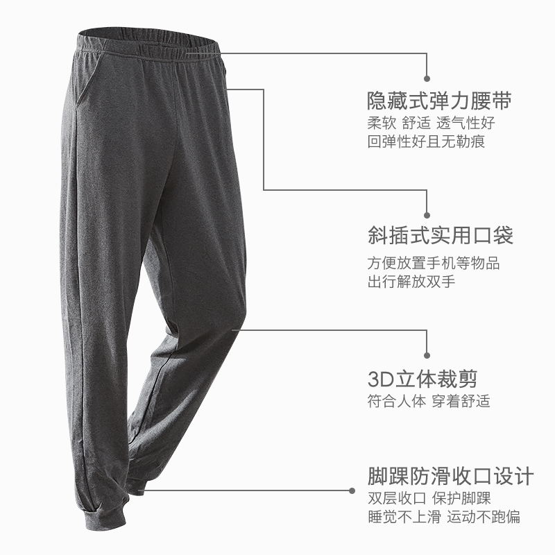秋冬居家裤 中厚全棉夏休闲运动长裤 男春秋宽松家居裤 2件纯棉睡裤