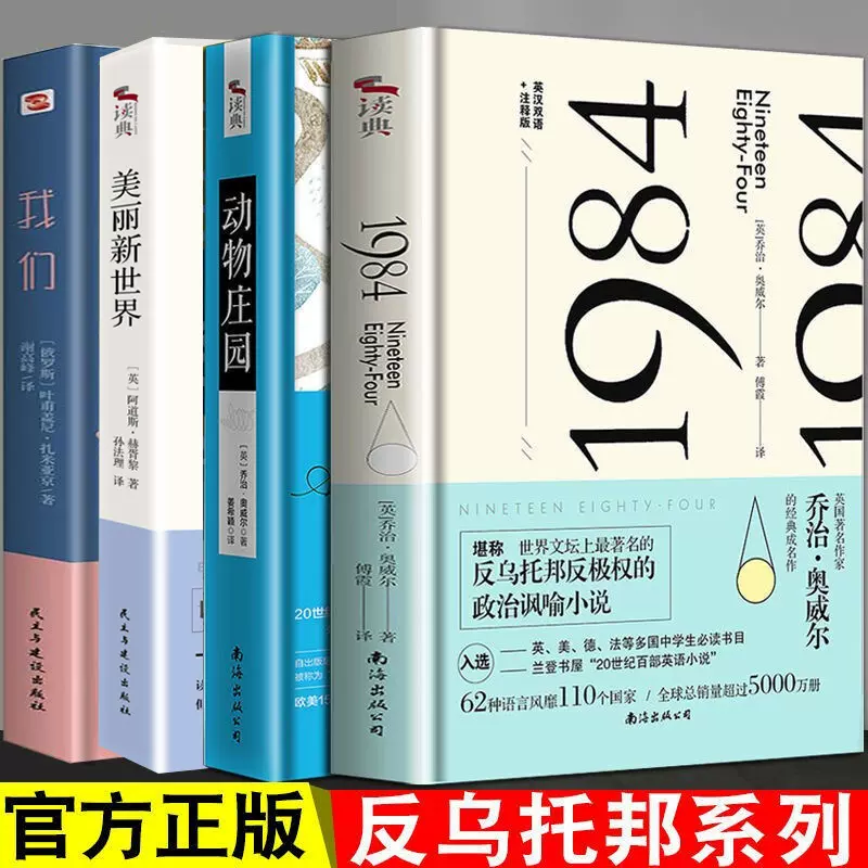 全4册反乌托邦四部曲 动物庄园 无删减全译本世界经典 中英双语 文学小说励志心理学读物书籍 美丽新世界原著正版 正版 我们 1984