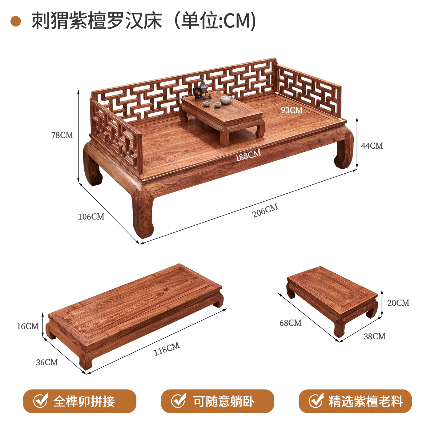 红木家具 实木床罗汉榻客厅沙发花梨木 刺猬紫檀万字罗汉床三件套