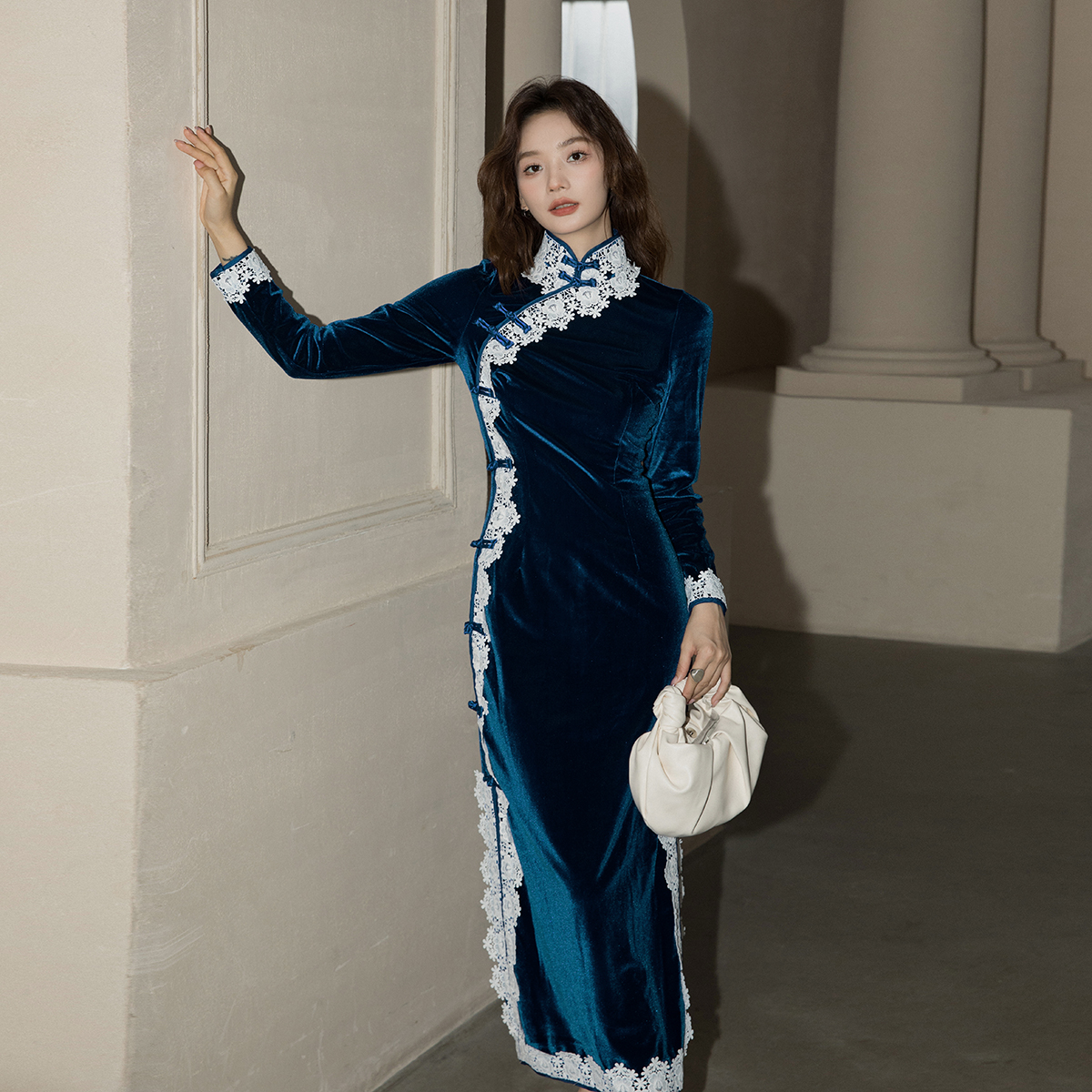 旗袍长款 中国风长袖 复古订婚礼裙女高级感 敬酒服新娘2025新款 中式