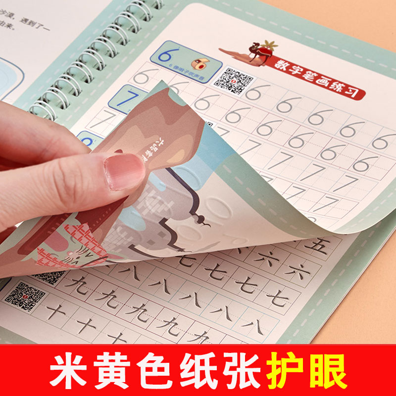 六品堂幼儿园字帖练字学前班小孩启蒙铅笔凹槽练习数字1234写字魔法本练字板儿童正楷宝宝楷书小学生初学者