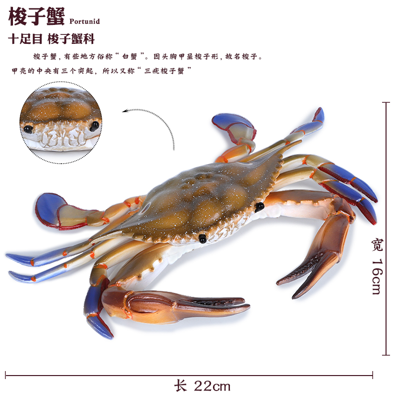 仿真海洋生物螃蟹玩具动物模型梭子蟹莎莉蟹实心儿童认知科教礼物