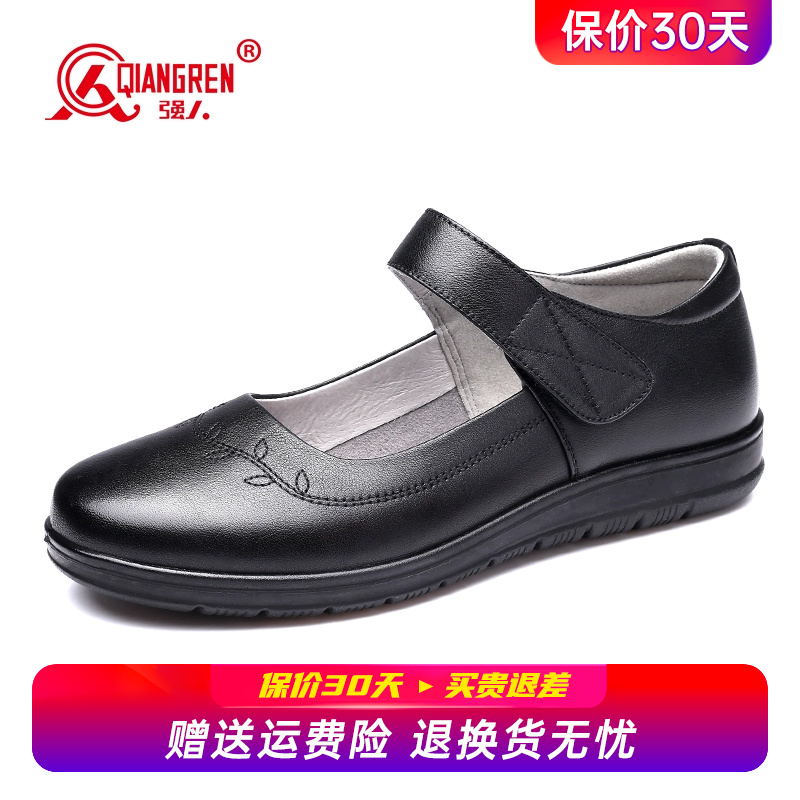 女舒适透气中老年皮鞋 平底防滑软底单鞋 女 真皮妈妈鞋 强人3515女鞋