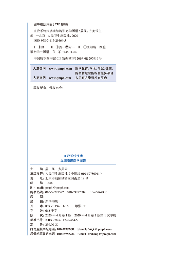 2020年3月参考书人民卫生出版 9787117294645 社 现货血液系统疾病血细胞形态学图谱内科学医学书籍血液系统疾病姜凤方美云主编 正版