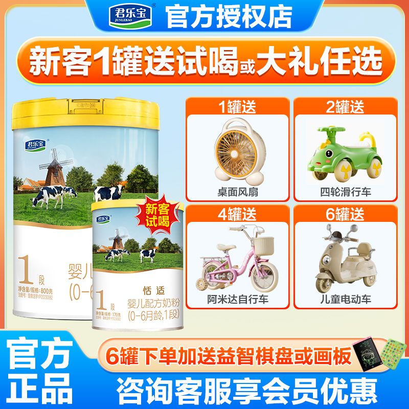 君乐宝恬适1段牛奶粉新生婴幼儿配方牛奶粉0 6个月一段800g罐装