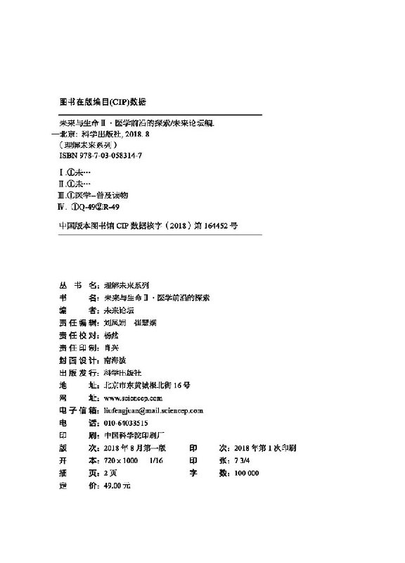 科学出版 未来与生命Ⅱ·医学前沿 理解未来系列 9787030583147 社 探索