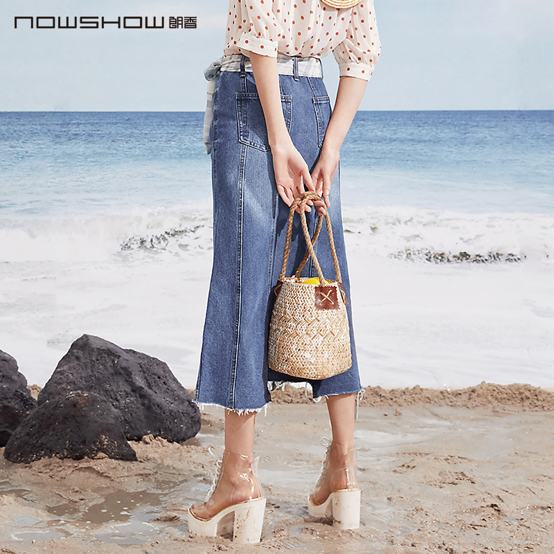 无腰带配饰NOWSHOW朗香蓝色牛仔半裙201021