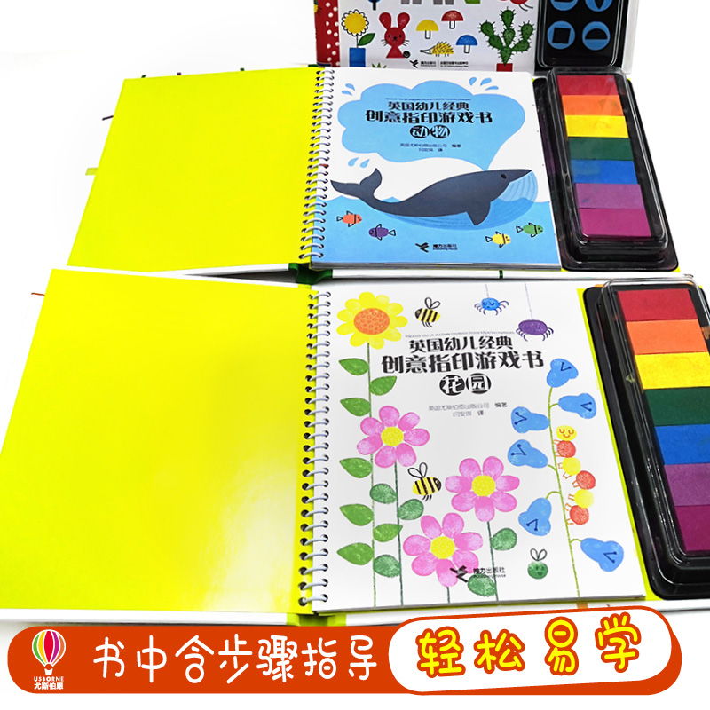英国幼儿经典 包邮 创意图章指印游戏书5册套装 认知培养创造力畅销书籍涂色书正版 彩色插图3到6岁儿童益智游戏图画书 尤斯伯恩