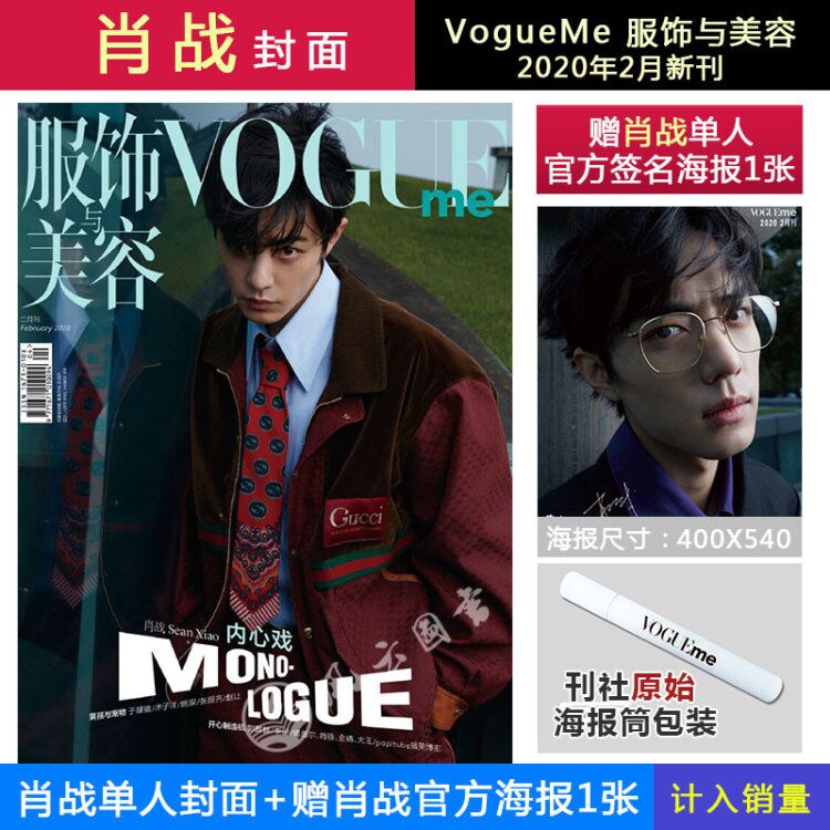四季 人物杂志2020年2月 官方版 2张官方海报 精彩 尼龙深圳青年 现货 书签 肖战封面 芭莎 时尚 海报筒 费加罗世界 服饰与美容