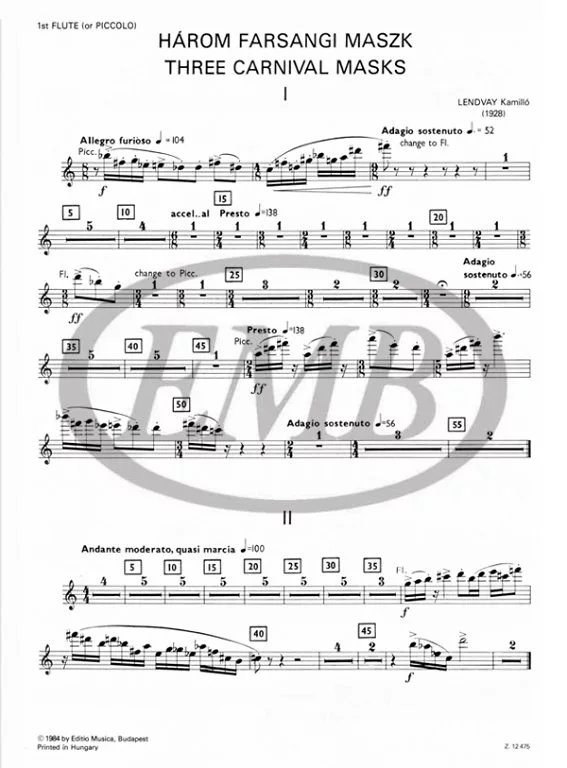 Kamillo 伦德沃伊 乐谱书 卡美洛 Three 室内管乐 Masks 三个狂欢节面具 12475 布达佩斯原版 Carnival Lendvay