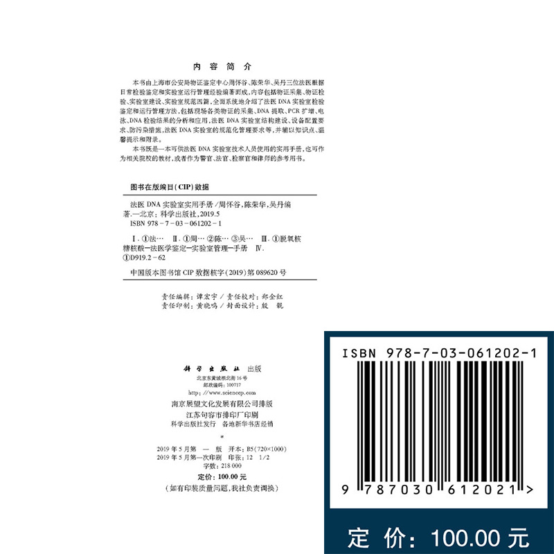 法医DNA实验室实用手册 陈荣华 科学出版 周怀谷 吴丹 社 现货