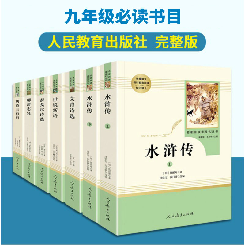 社人教版 世说新语聊斋志异泰戈尔诗选初中生初三学生上册课外阅读名著书籍人民教育出版 水浒传原著正版 九年级上阅读书6册艾青诗选
