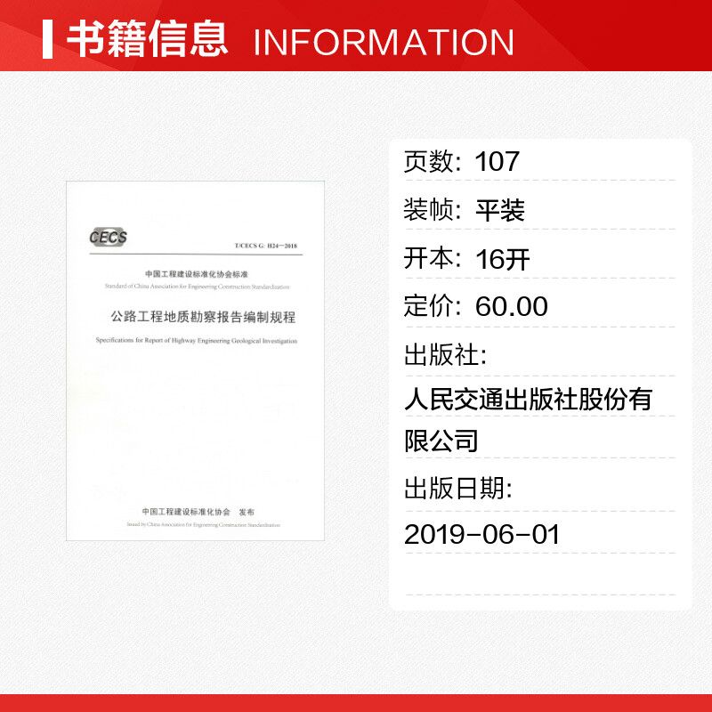 正版 社股份有限公司 CECS 人民交通出版 新华书店旗舰店文轩官网 书籍 2018 H24 公路工程地质勘察报告编制规程