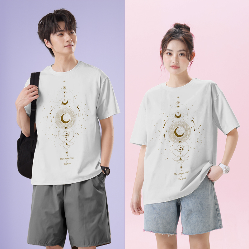 无界 night月亮行星创意印花纯棉t恤男女夏设 最长 夜晚Longest