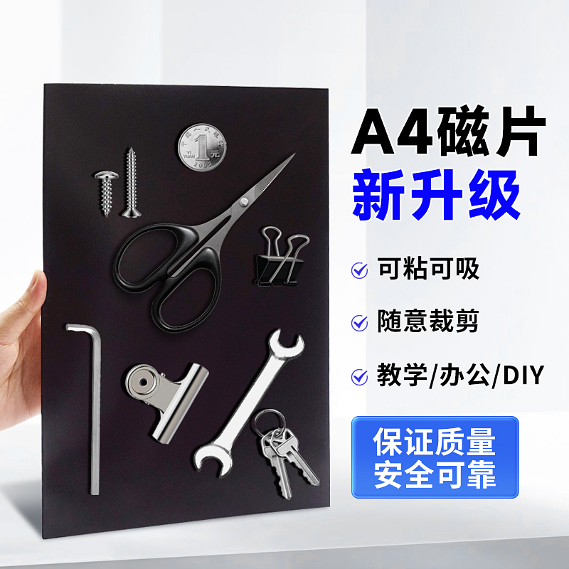 教学教具A4软磁片吸铁石磁力贴橡胶磁铁贴片黑板磁性贴带强力背胶