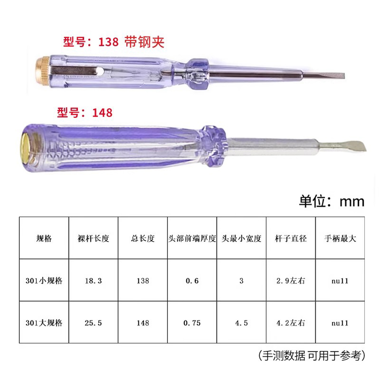 多功能测电笔两用试电笔验电笔电工专用301型138螺丝刀148氖泡灯