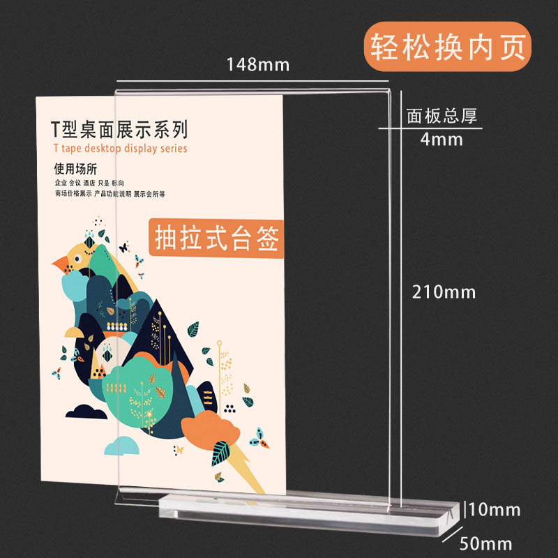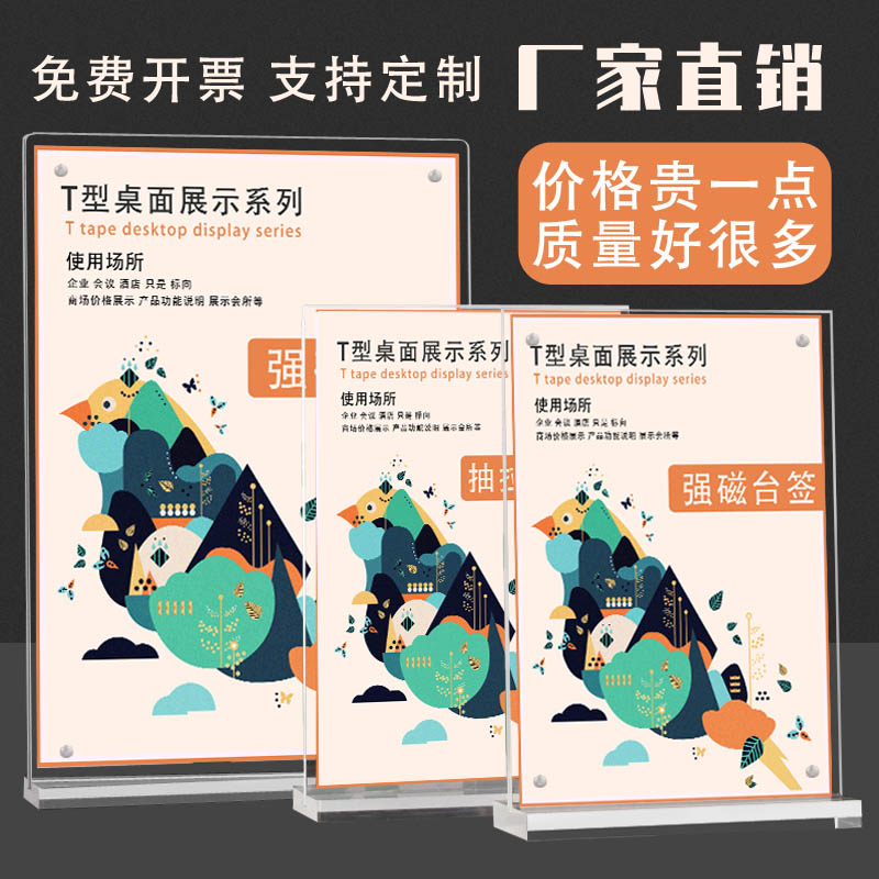 台卡亚克力展示架A4立牌价目表强磁桌卡台架双面透明a5桌牌广告摆台t型酒水菜单桌面价格展示牌餐牌台签定制