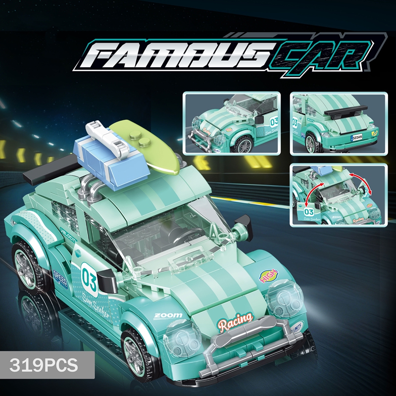 积木赛车2025新款 生日礼物小颗粒桌面模型 益智玩具男孩子儿童拼装