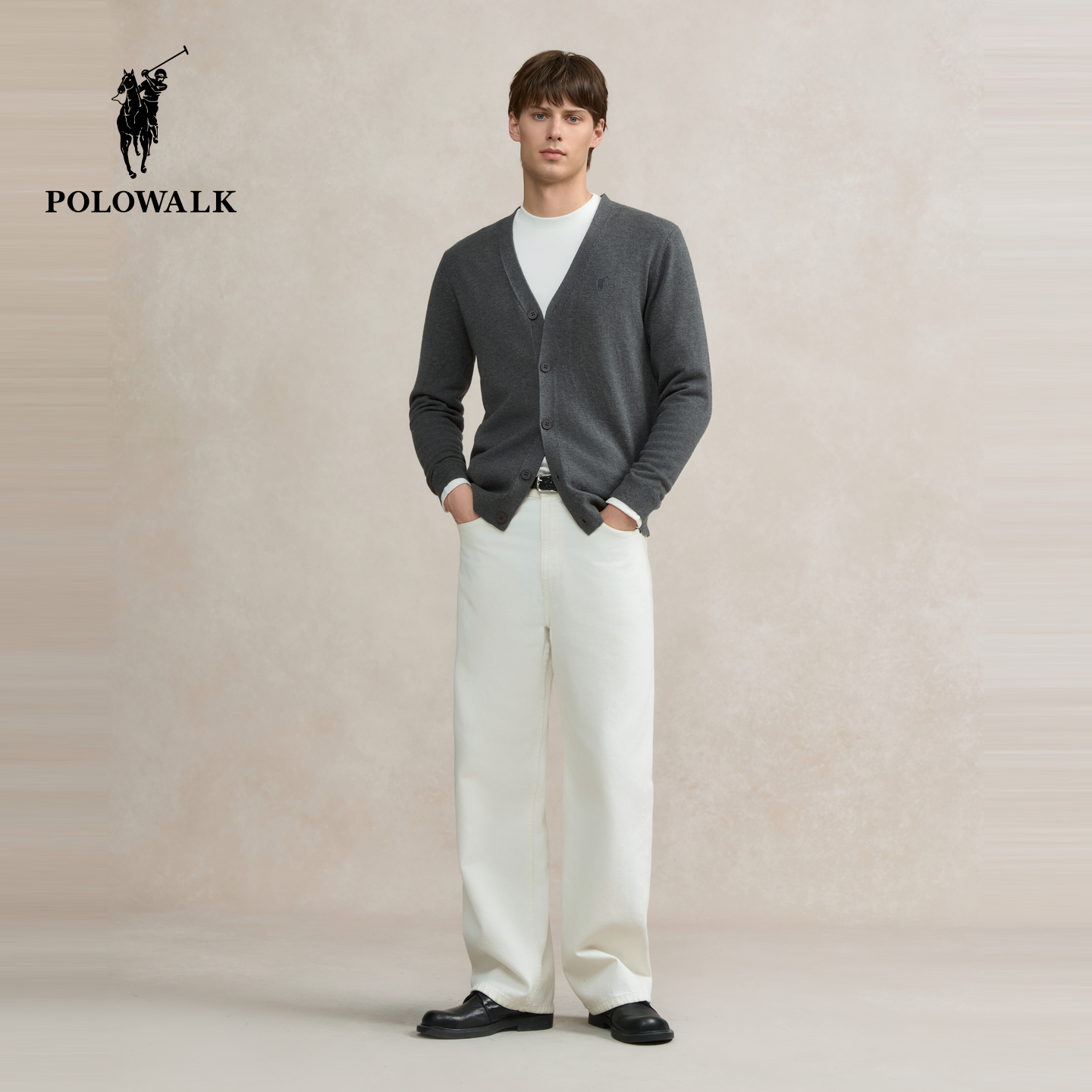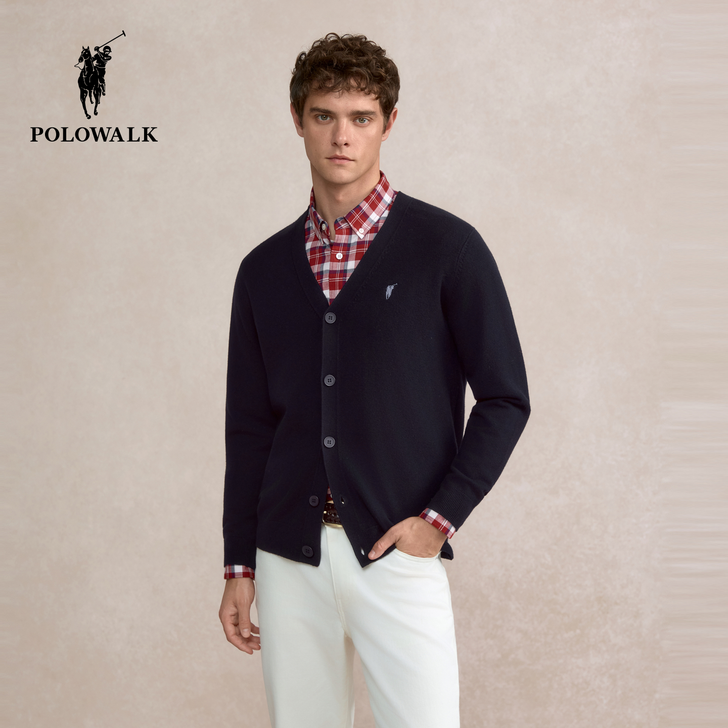 新品 2025秋季 商务绅士通勤V领针织休闲外套 针织开衫 POLOWALK男式