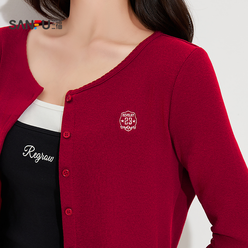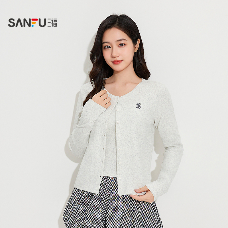 美高徽章刺绣长袖 单衣 上衣507225 BM风学院开衫 三福女秋季