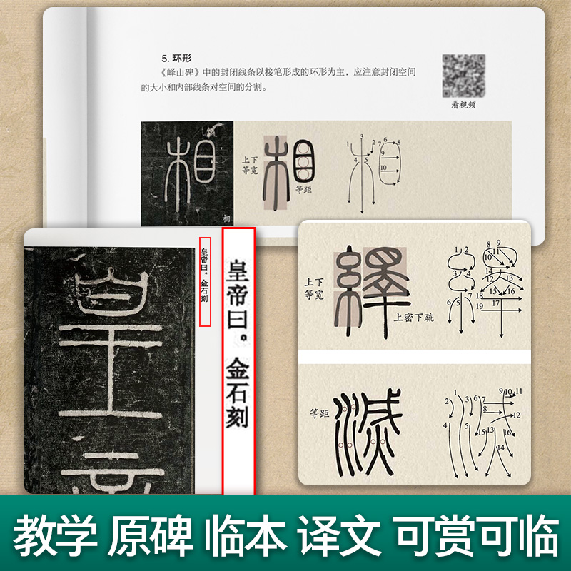 临摹秦小篆书法临摹华夏万卷书法篆刻初学者 小篆峄山碑毛笔字卡篆书毛笔字帖临摹长安本碑帖近距离临摹字卡 李斯篆书峄山碑