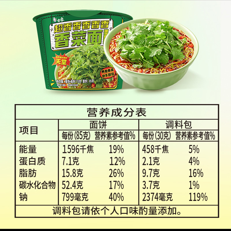 白象香菜方便面桶装 泡面免煮冲泡速食香菜味面宿舍夜宵