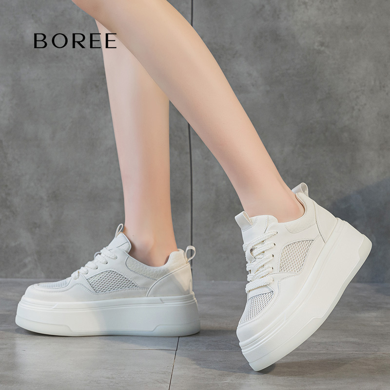厚底增高休闲鞋 软皮舒适阿甘鞋 松糕防滑板鞋 女2025新款 透气小白鞋