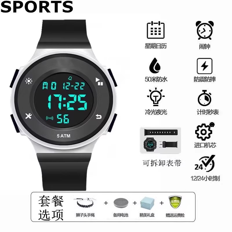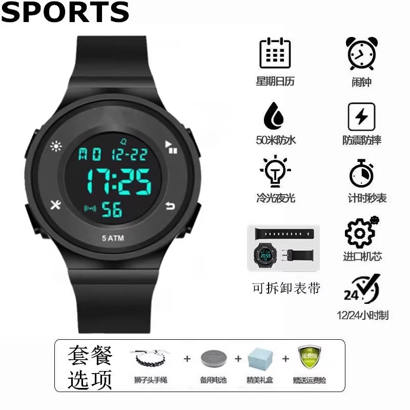 电子手表男女款 初中高中学生儿童男生女孩多功能防震智能运动游泳