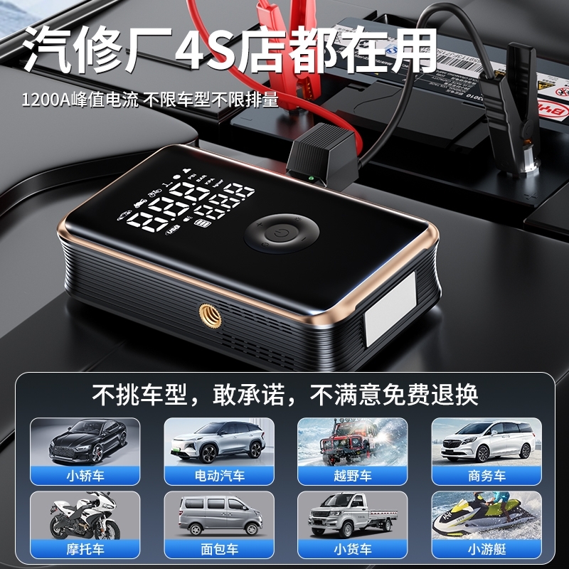 汽车启动应急电源搭电宝充气泵一体电瓶线搭火搭电神器12v24v专用
