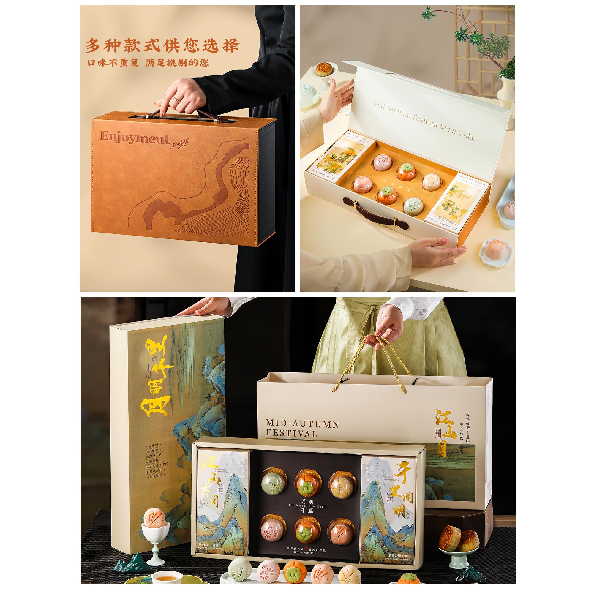 月饼礼盒装 蛋黄莲蓉五仁奶黄流心桃山2025中秋节礼品送人 定制广式