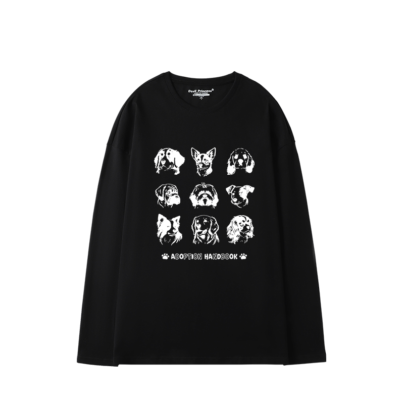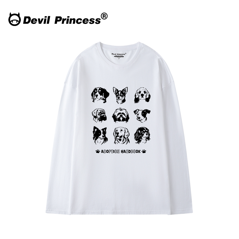 oversize大版 t恤女高街超火卡通印花重磅上衣潮 宽松白色正肩长袖