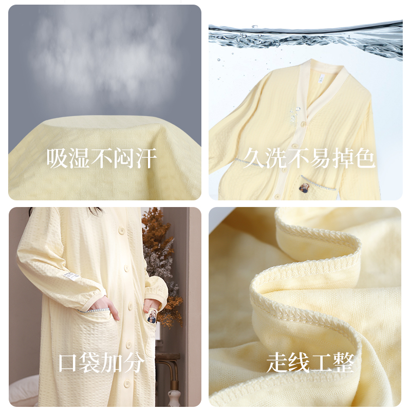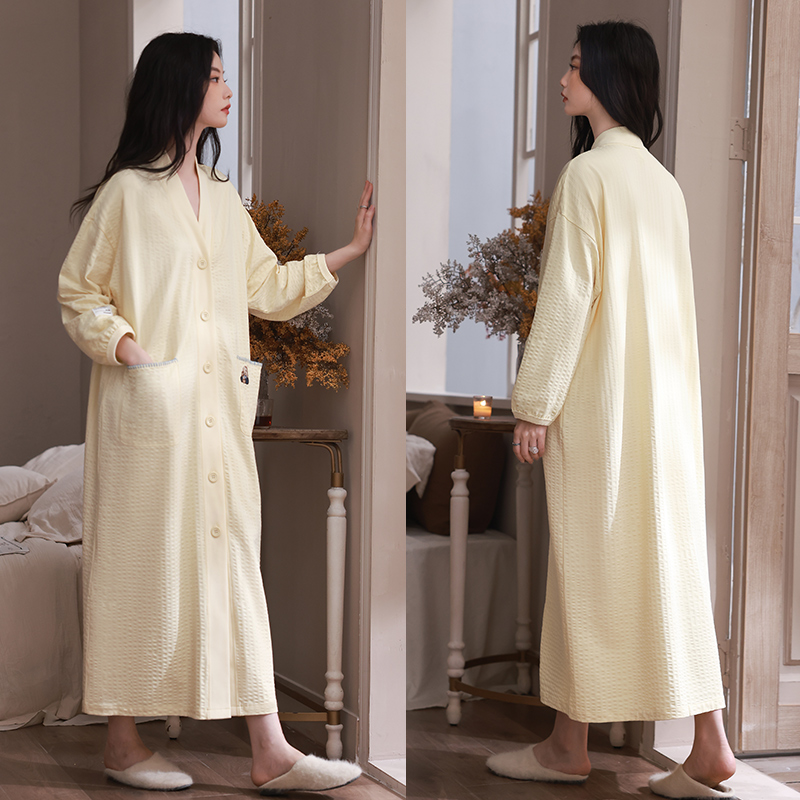 睡衣睡裙家居服大码 超长款 浴袍 纯棉长袖 轩靓泡泡棉睡袍女士春秋季
