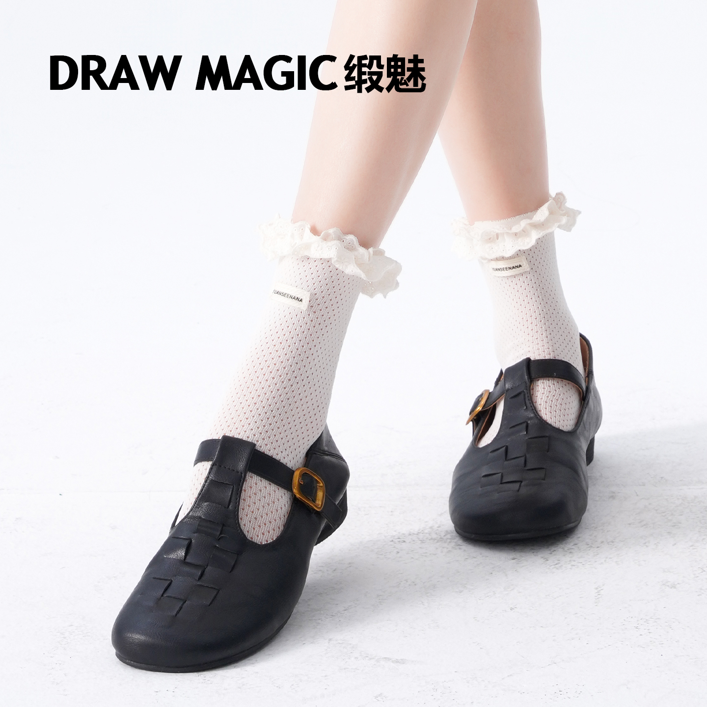 月子长袜 乐福鞋 木耳花边堆堆袜子女秋冬季 黑色纯棉中筒袜配小皮鞋