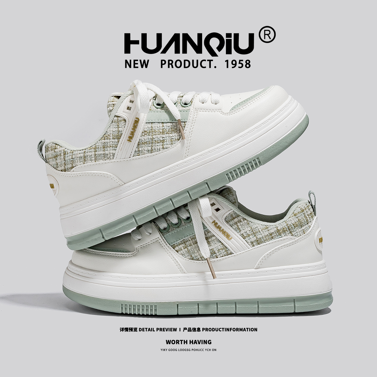 百搭轻便厚底休闲板鞋 环球小香风抹茶绿小白鞋 新款 2025秋季 子 女款