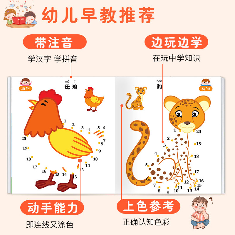 儿童画画本数字连线画幼儿园专用绘画涂色填色画宝宝启蒙控笔训练