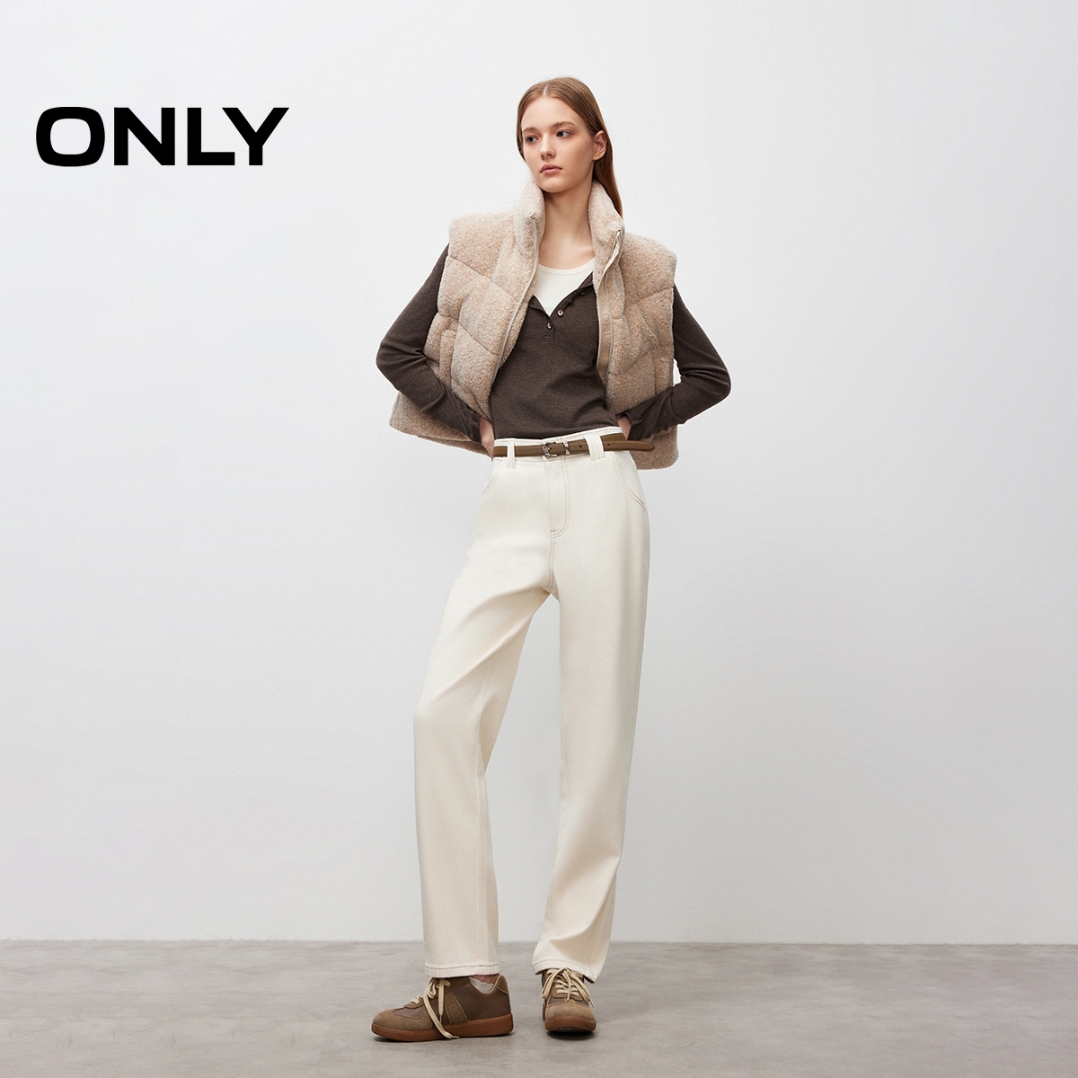 九分牛仔裤 磨毛保暖高腰梨型友好锥形男友裤 女 新款 ONLY2025冬季