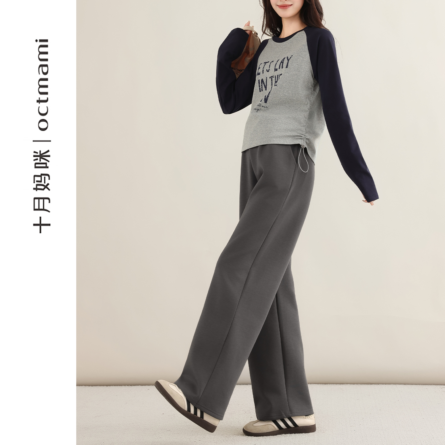 2025新款 孕期秋穿搭通勤休闲裤 微喇垂垂裤 嫚熙高弹翻折腰头孕妇裤