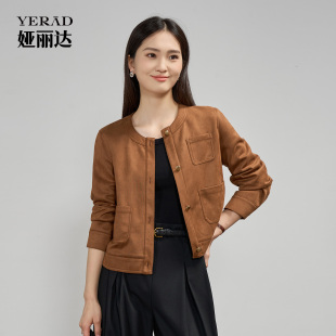夹克 上衣休闲短款 娅丽达宽松显瘦圆领麂皮绒外套女2025秋季 新款