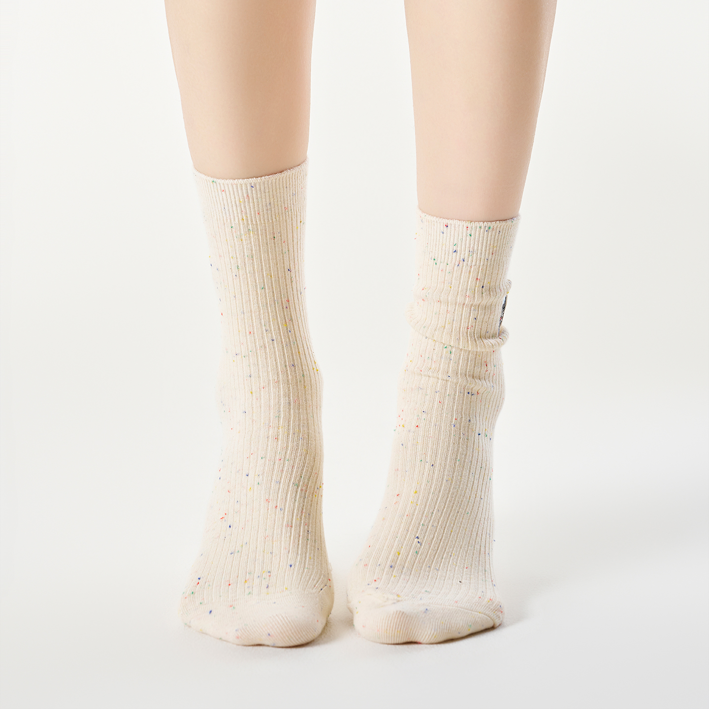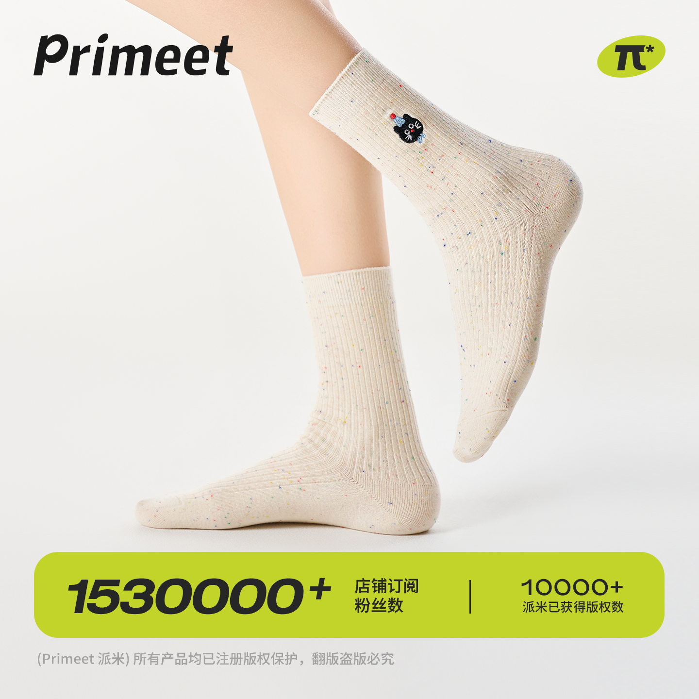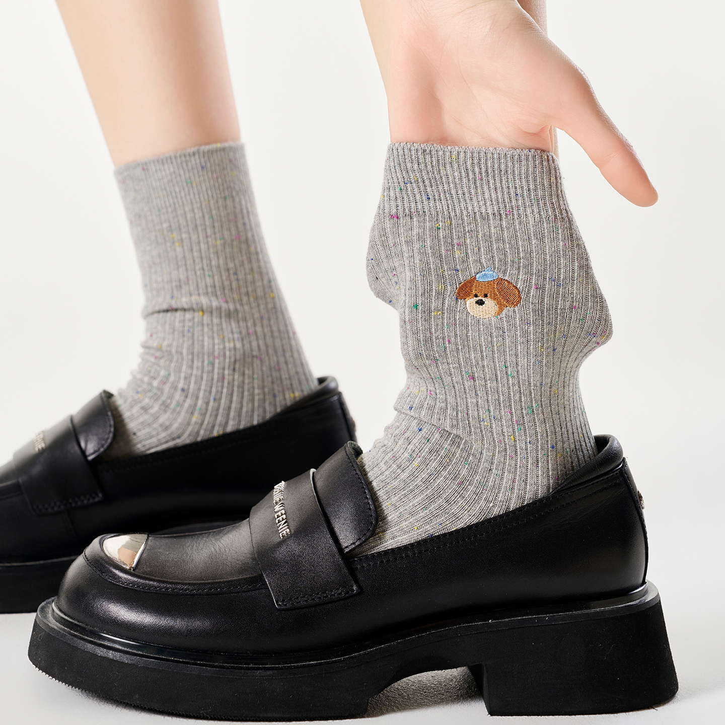 派米灰色袜子女款 白色堆堆袜无骨长袜 春秋刺绣中筒袜秋冬配小皮鞋
