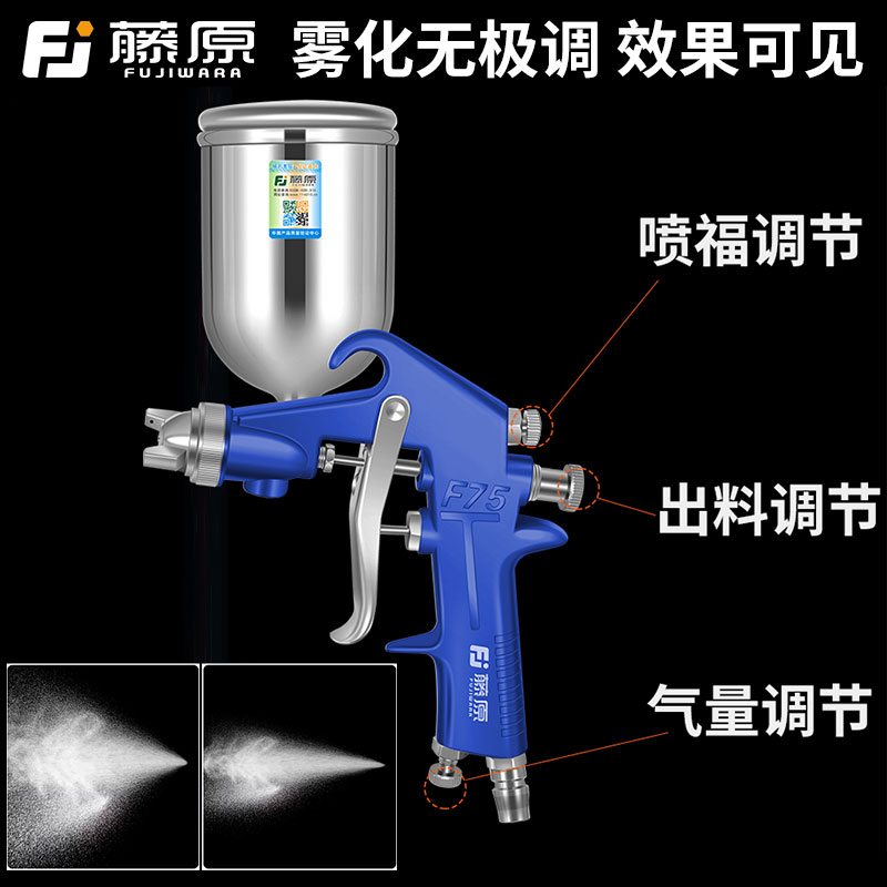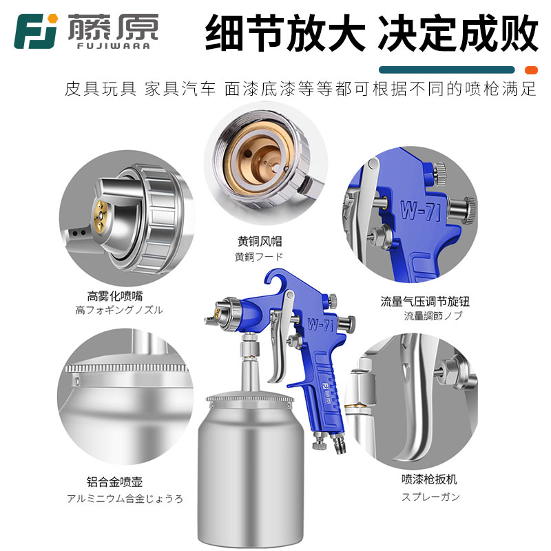 藤原W77喷漆枪汽车油漆喷枪上壶气动工具高雾化大版 气泵下壶喷壶