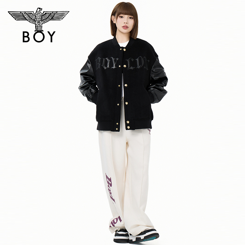 BOYLONDON秋季 纽扣刺绣棒球夹克外套N23022 流行潮牌男女同款