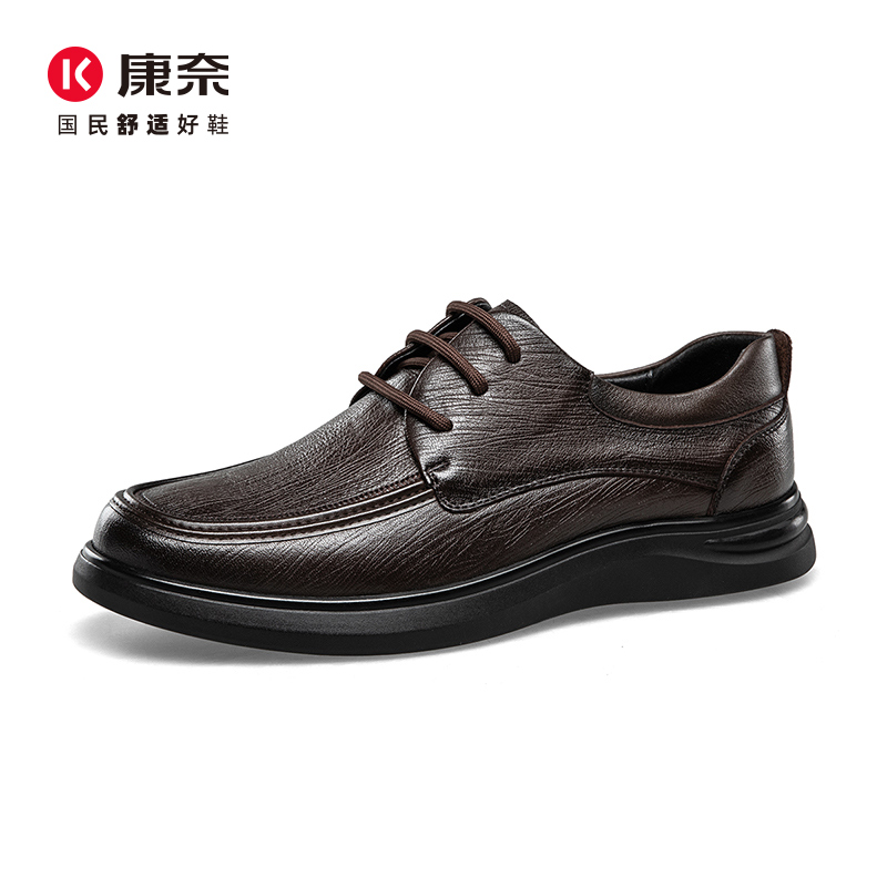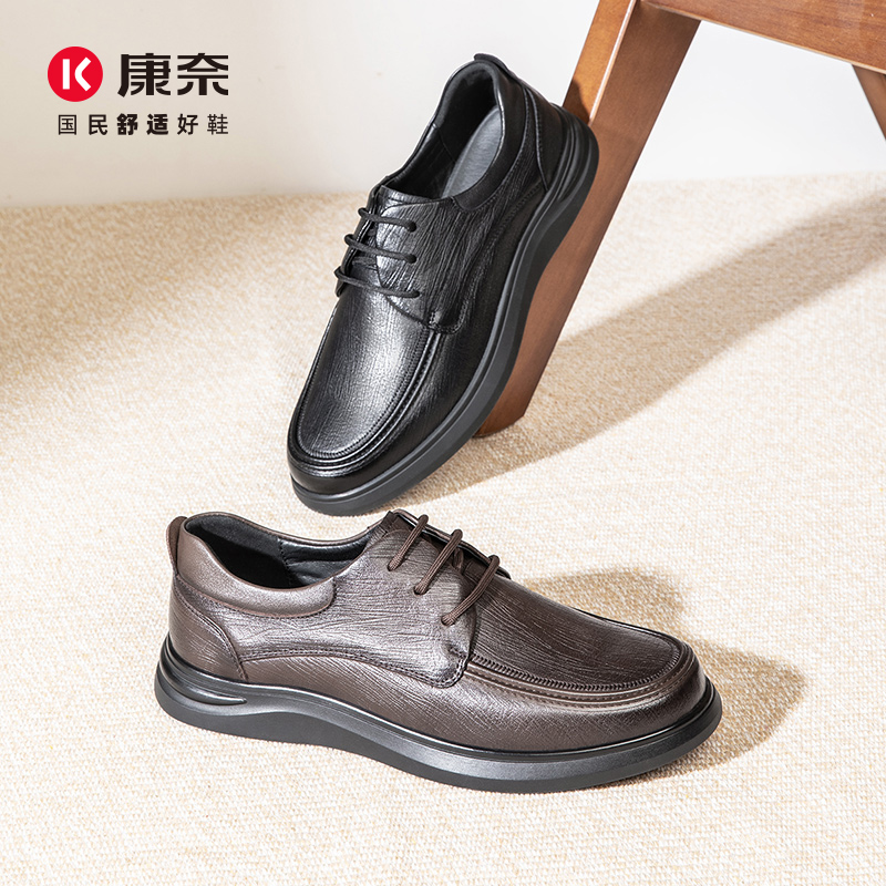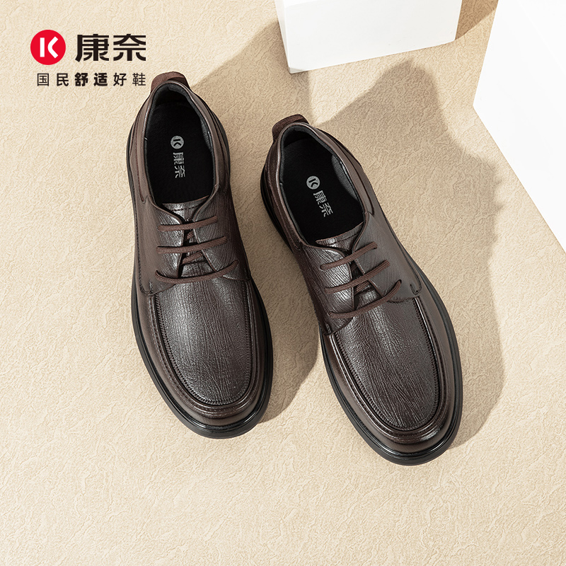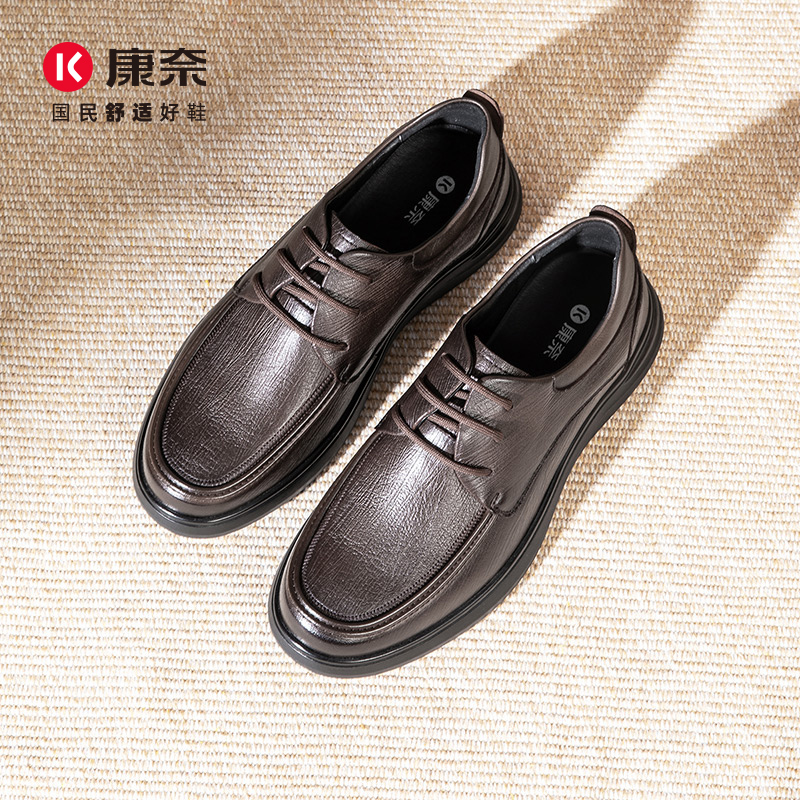 2025秋冬新款 男鞋 商务鞋 增高皮鞋 子 软底休闲系带圆头正装 奥康男鞋