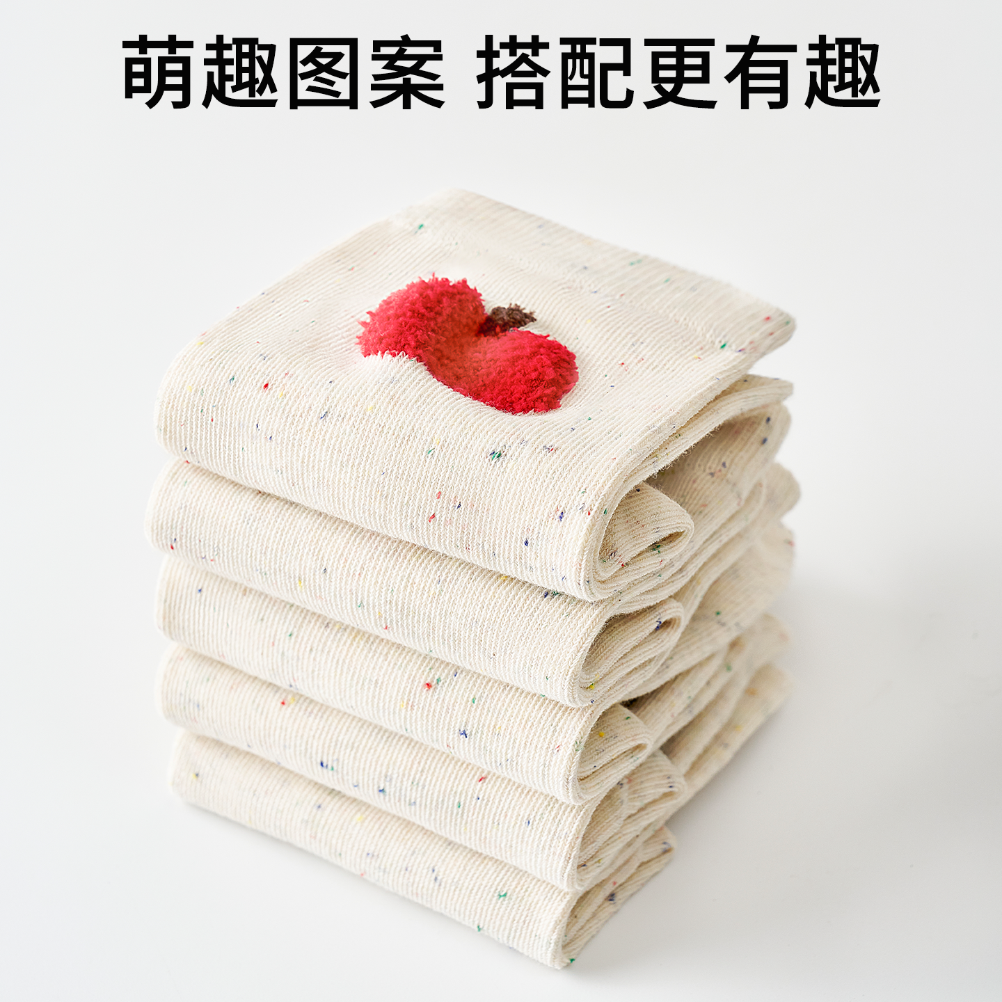 派米白色袜子女款 春秋卡通可爱中筒袜点子纱蝴蝶结无骨堆堆袜长袜