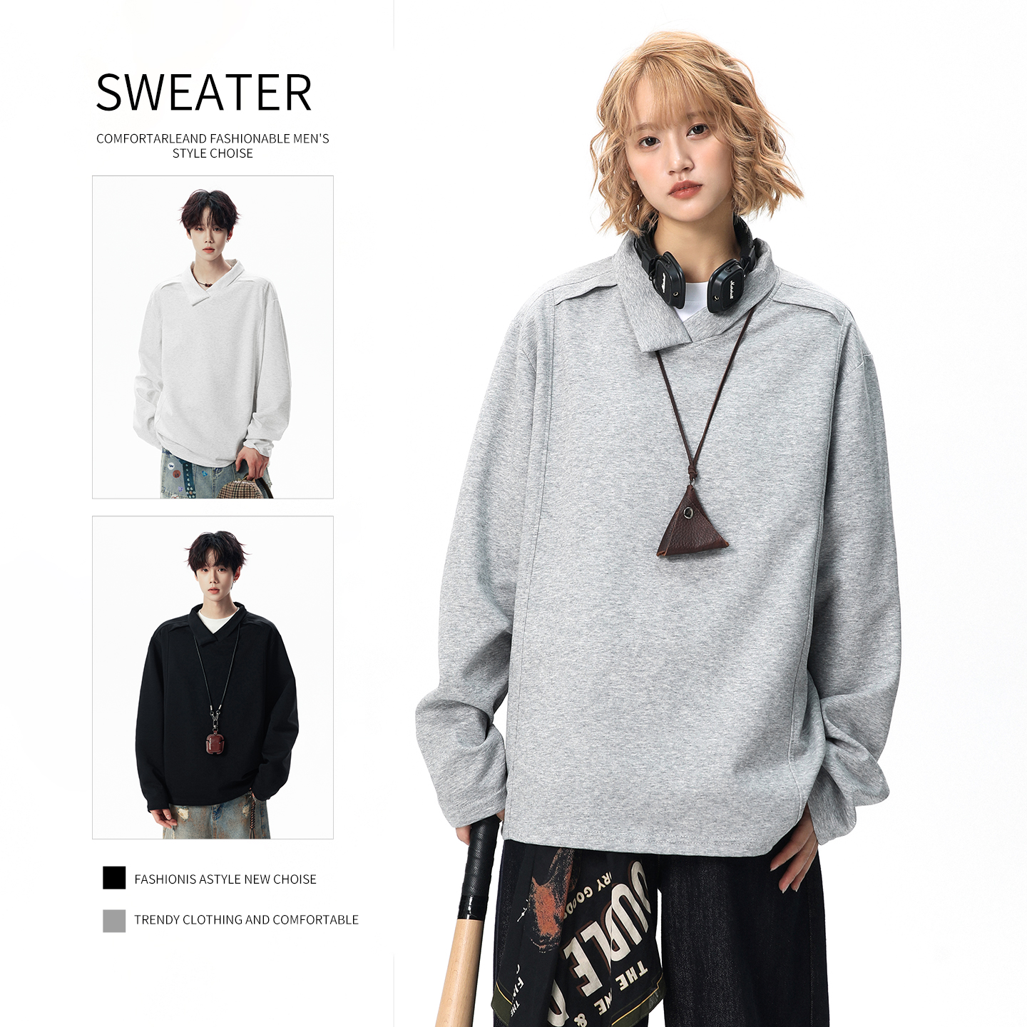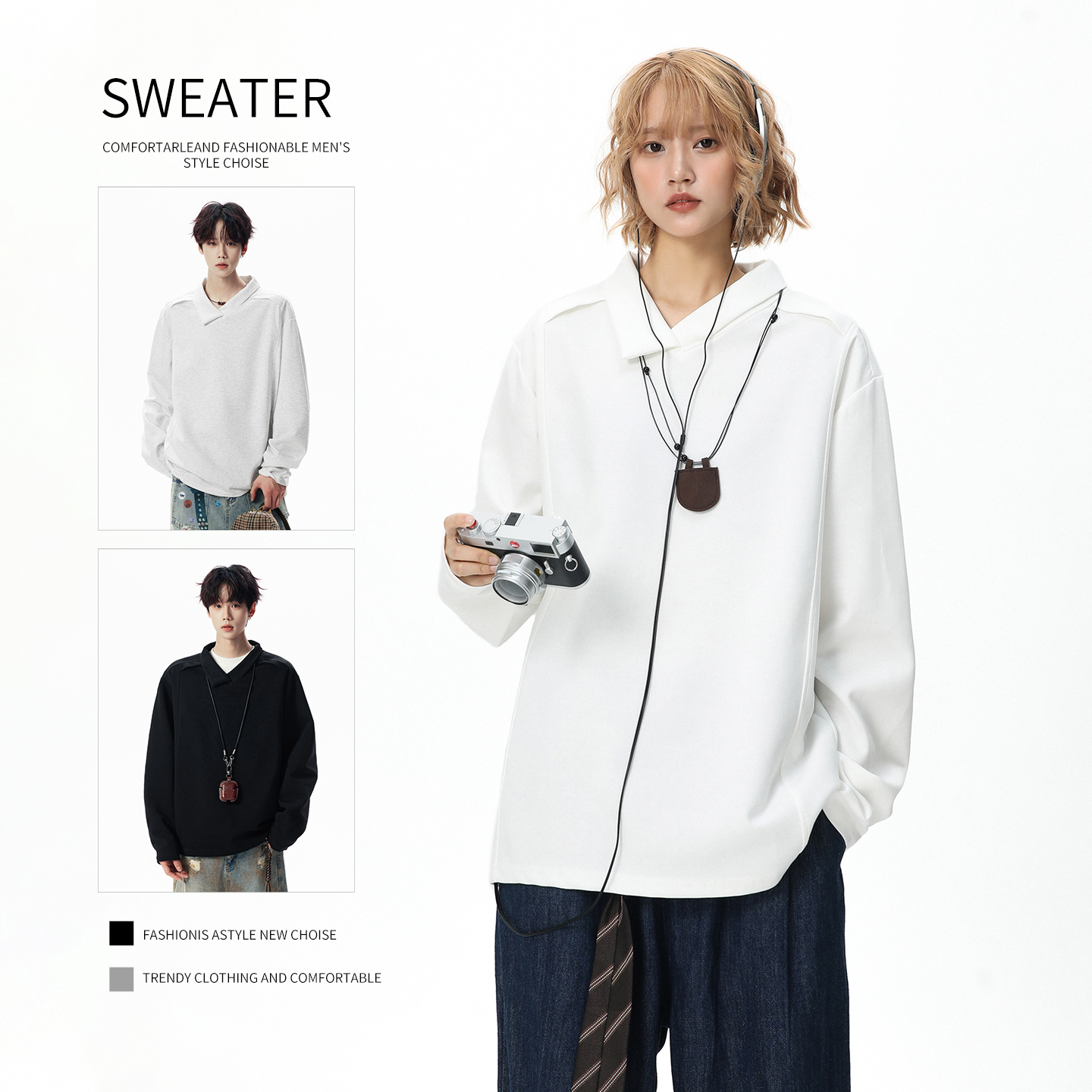 宽松上衣 美式 设计感高级风不规则卫衣男女秋季 潮牌休闲情侣Polo衫