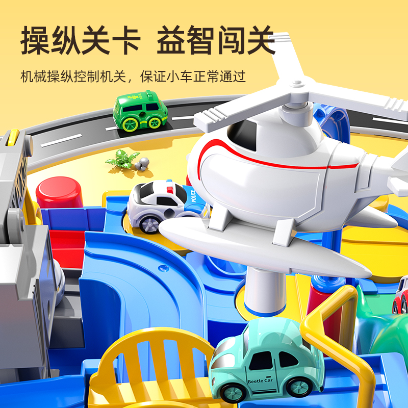 益智小火车轨道汽车闯关大冒险停车场滑行3到6岁儿童玩具男女孩