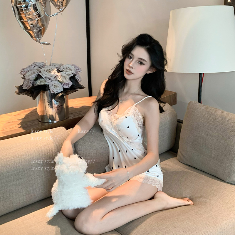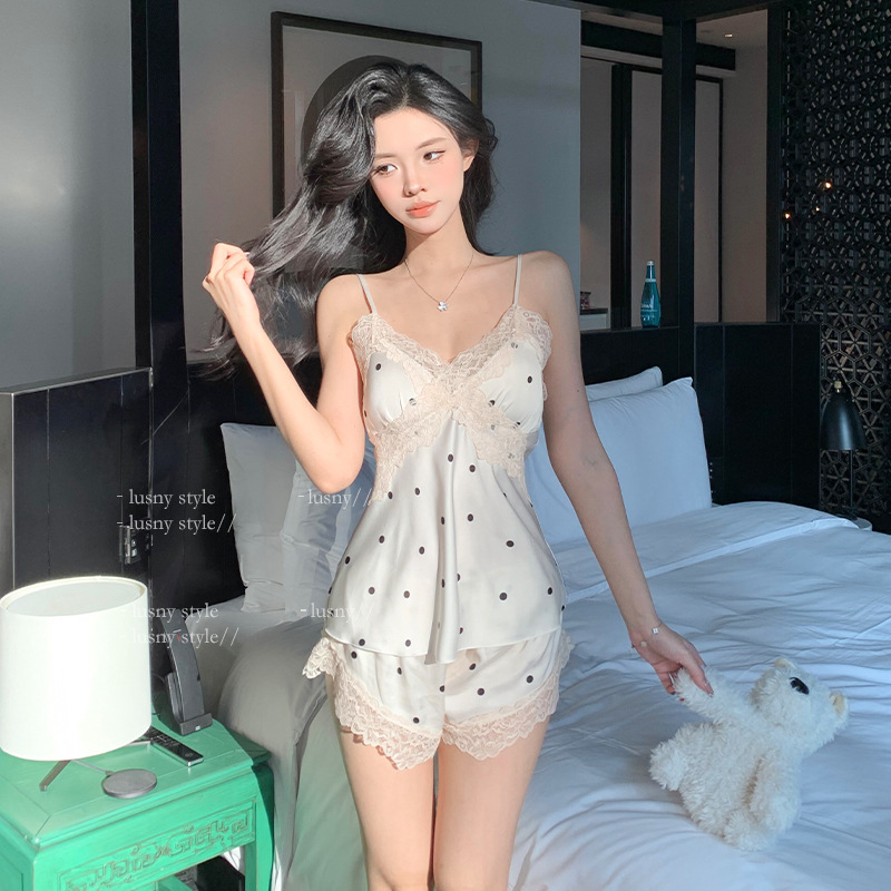 家居服 带胸垫冰丝纯欲风吊带睡裙吊带短裤 性感睡衣女夏季 2025新款