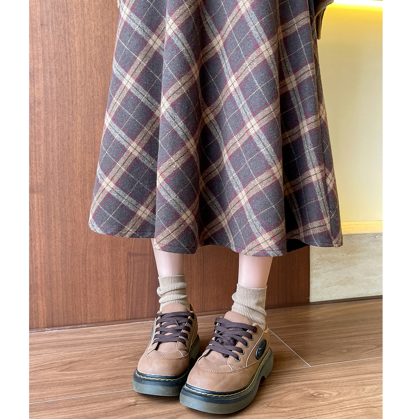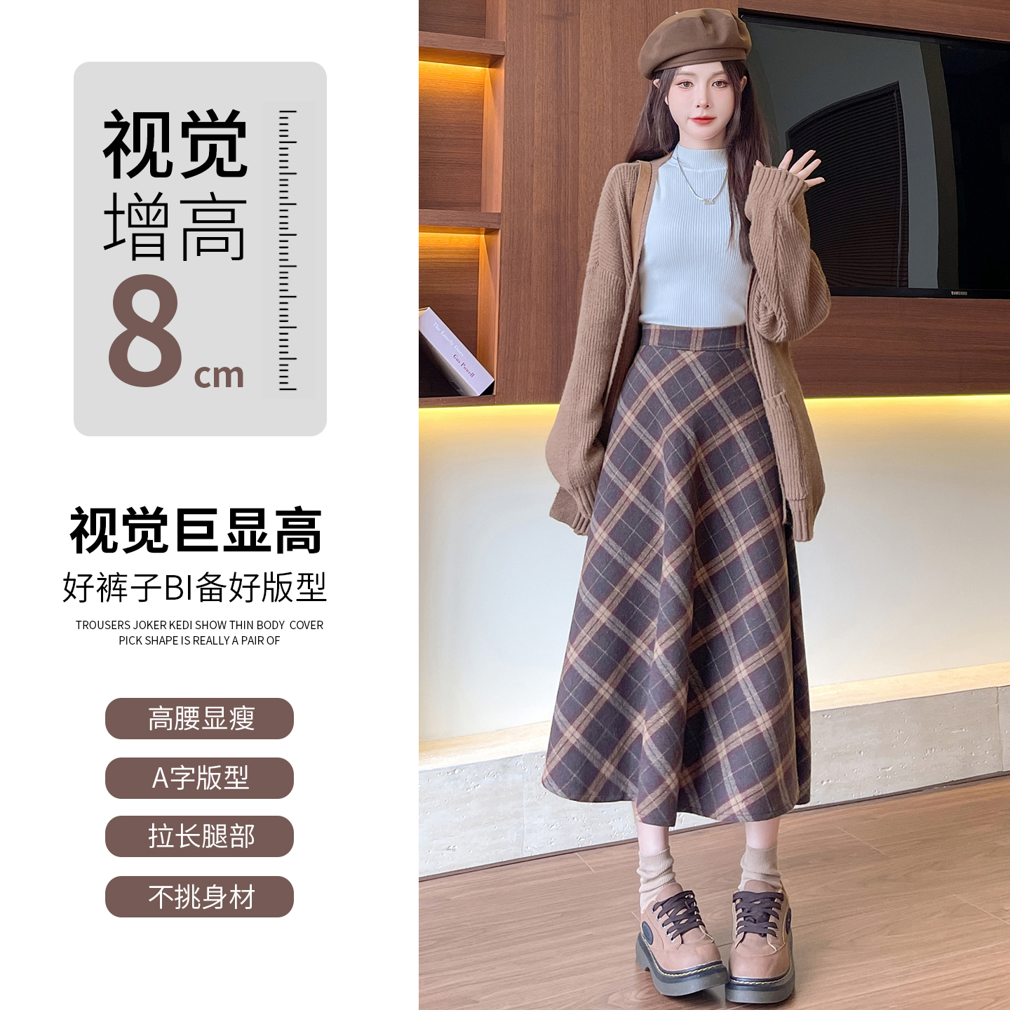 紫涵高腰格纹百褶a字裙短裙女冬季 甜美学院风半身裙子小个子 新款