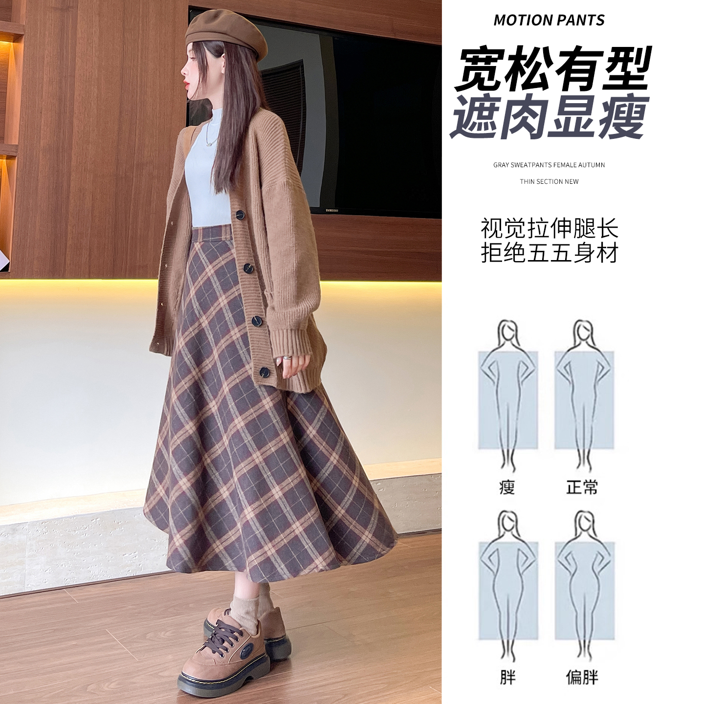 大码 灰色毛呢半身裙女长裙宽松直筒针织a字开叉包臀裙胖mm春秋冬